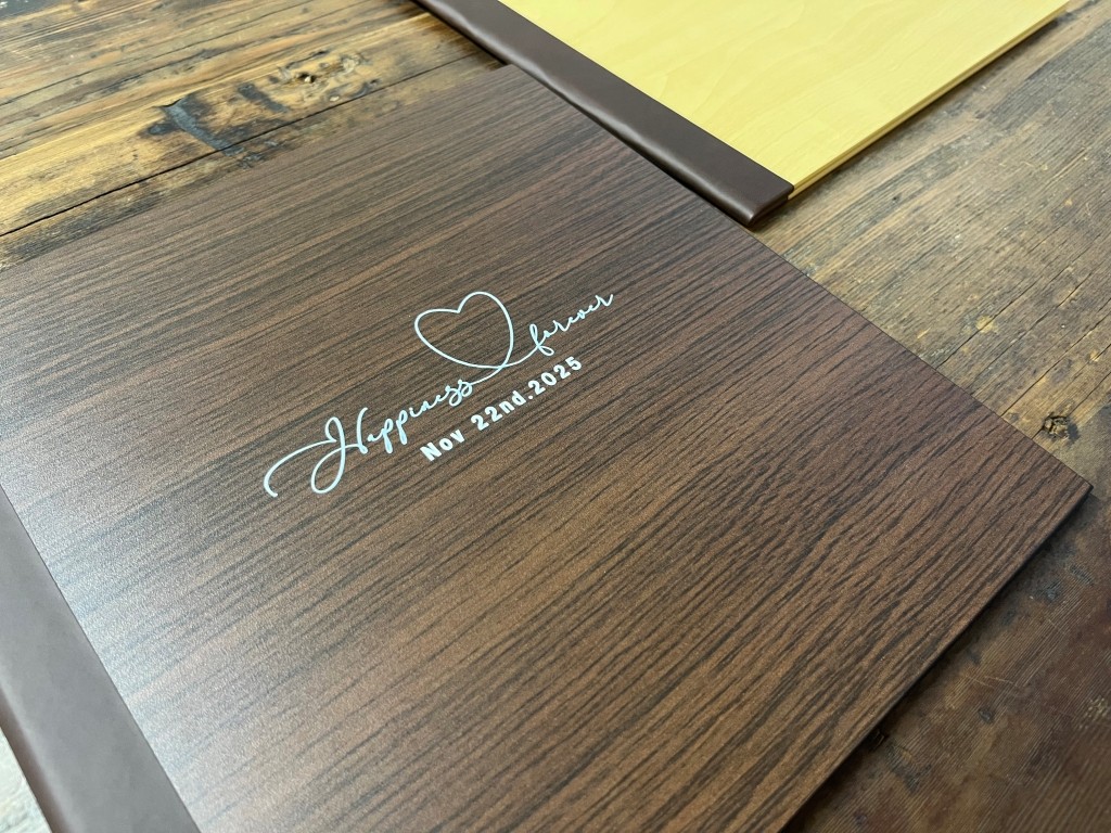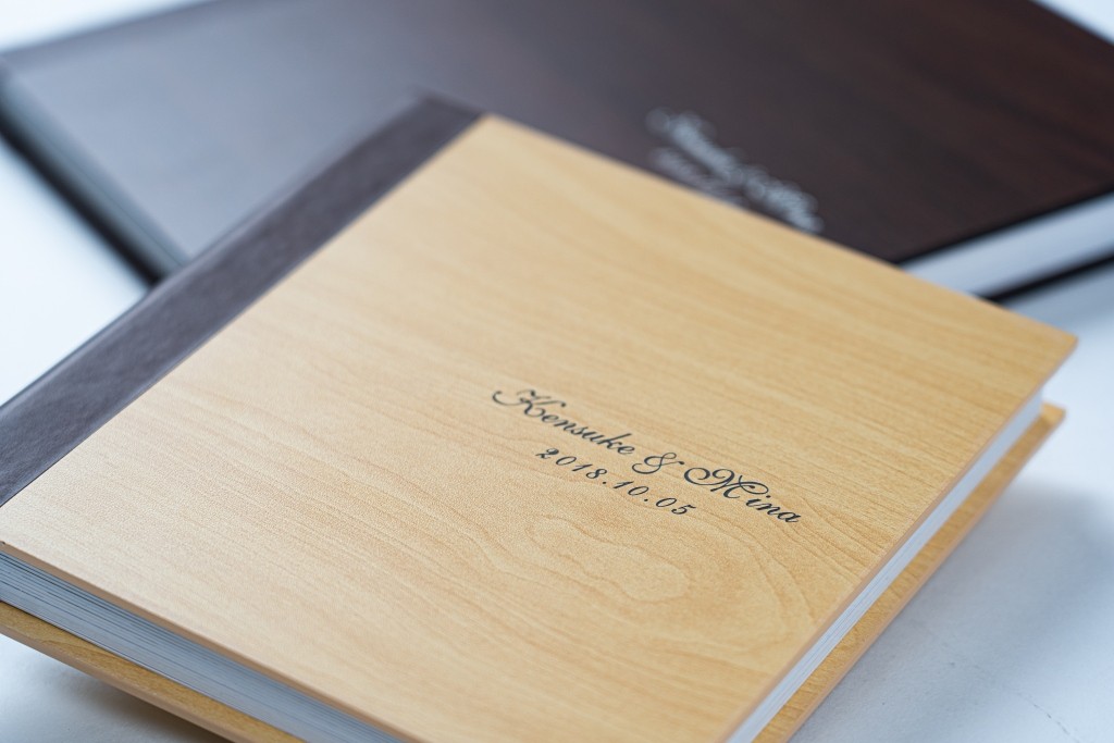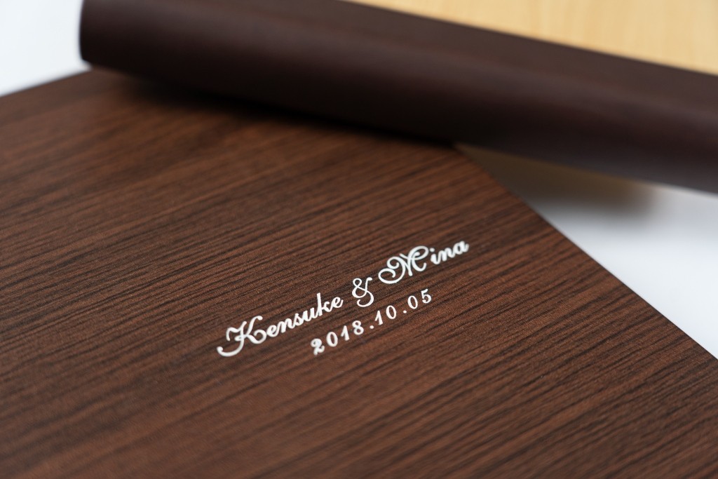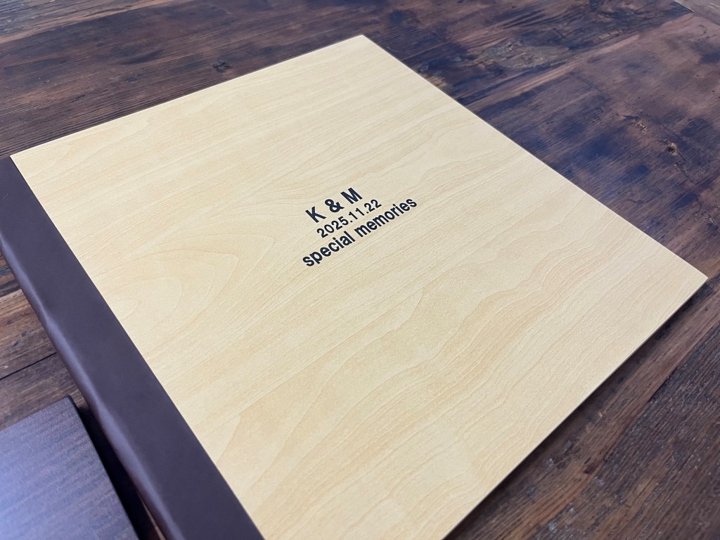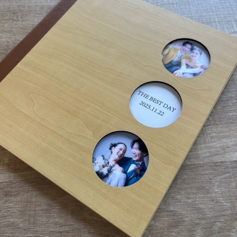 自然な木目の温かみと丈夫さ、重厚感を兼ね備えた合板。 表紙デザインは、名前の刻印やくり抜きフォトタイプなど 豊富なバリエーションを展開しています。 シンプルでありながら存在感のあるデザインは、ウェディングや 家族の記念日、子どもの成長記録など、 あらゆる大切な思い出に寄り添います。